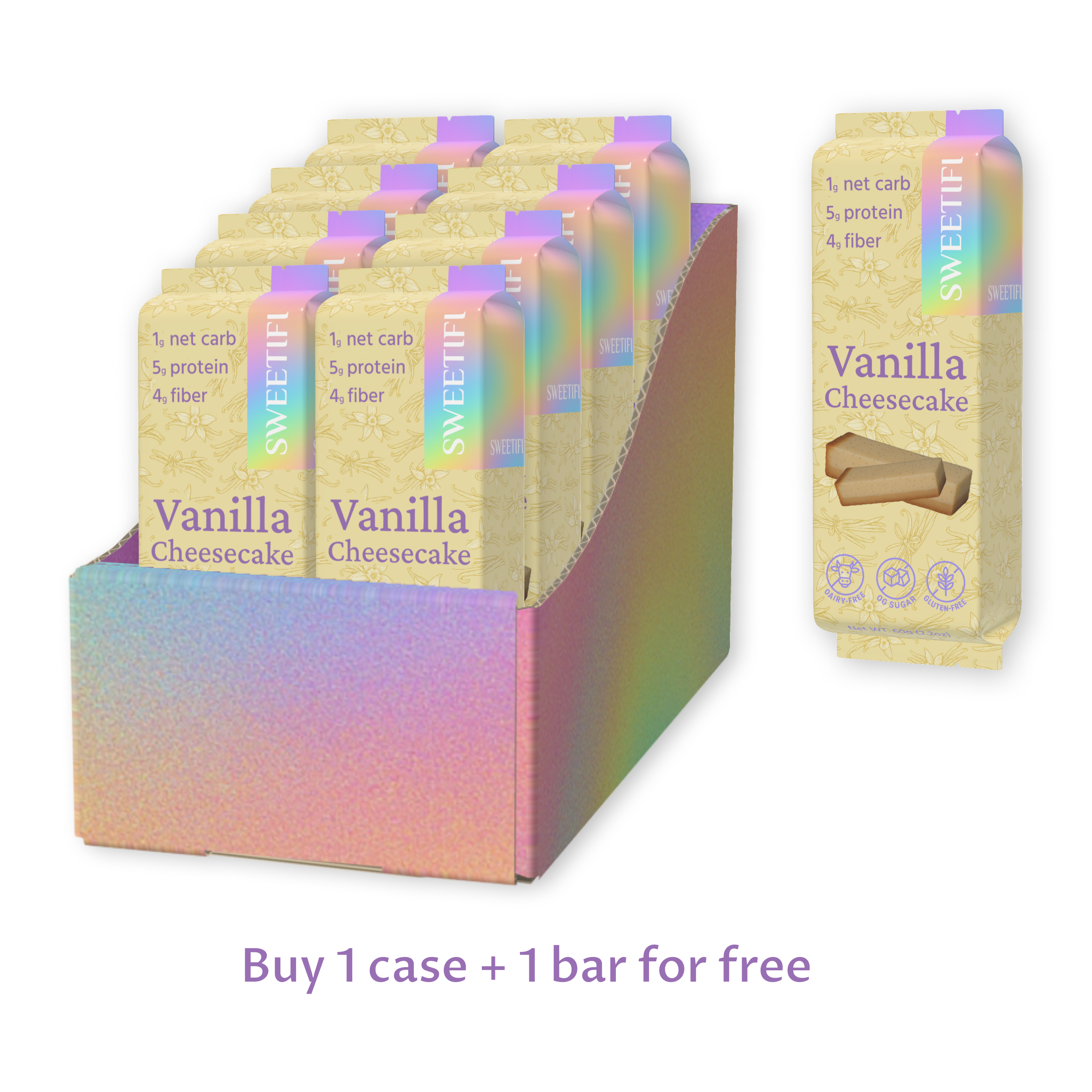 Sugar-free, Gluten-free, Vegan option.